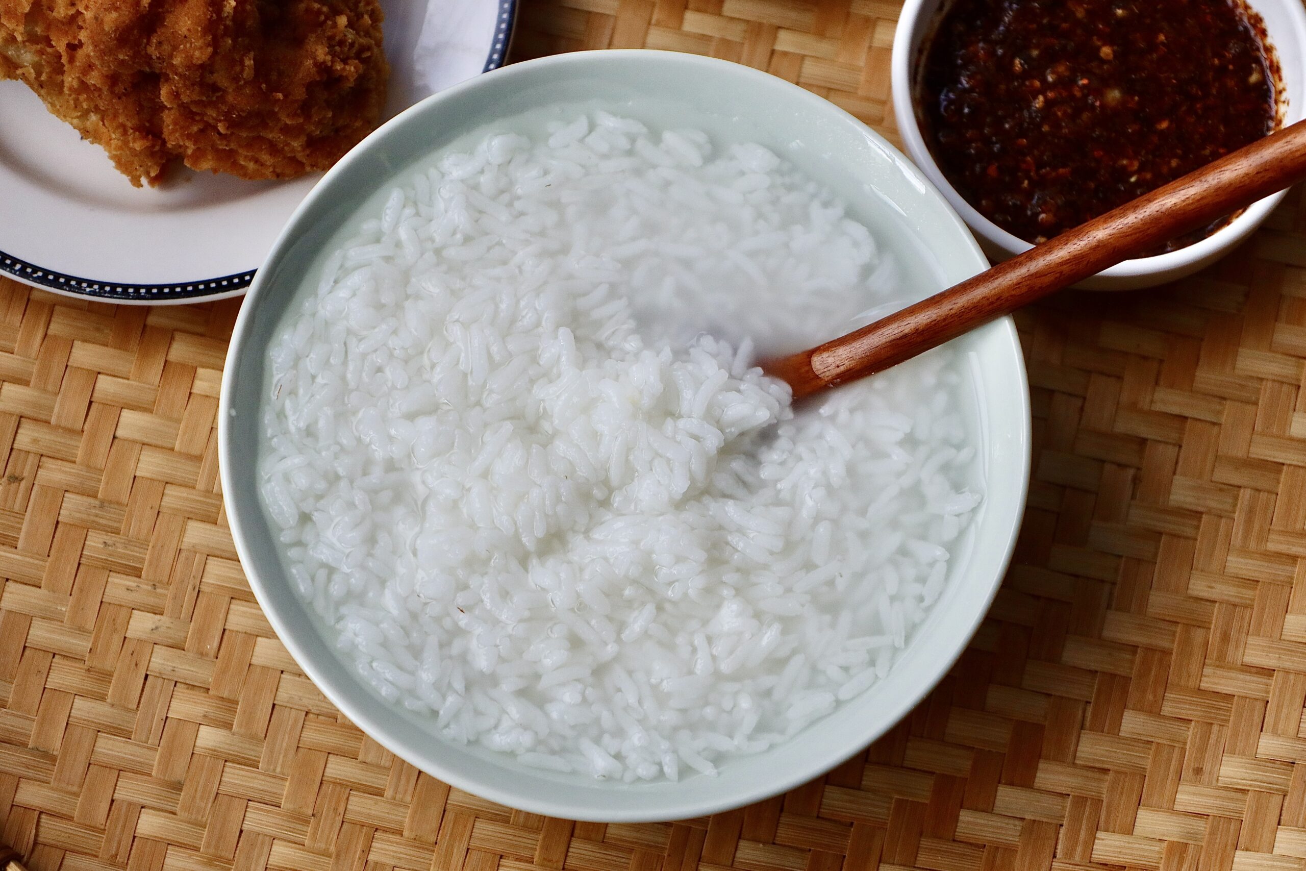 The thing about rice and water is that it should never be made with cold cooked rice. It should always be made with hot cooked rice. The recommended water to use is filtered or purified water, not tap water. The way to enjoy rice with water is to mix filtered or purified water with hot cooked rice. Iced water mixed with hot cooked rice is also common, especially during the hotter months because it’s refreshing. For me, the NO GO is using tap water with either cold or hot rice. Cold cooked rice with cold iced water is also a NO. That’s basically eating hard rice.